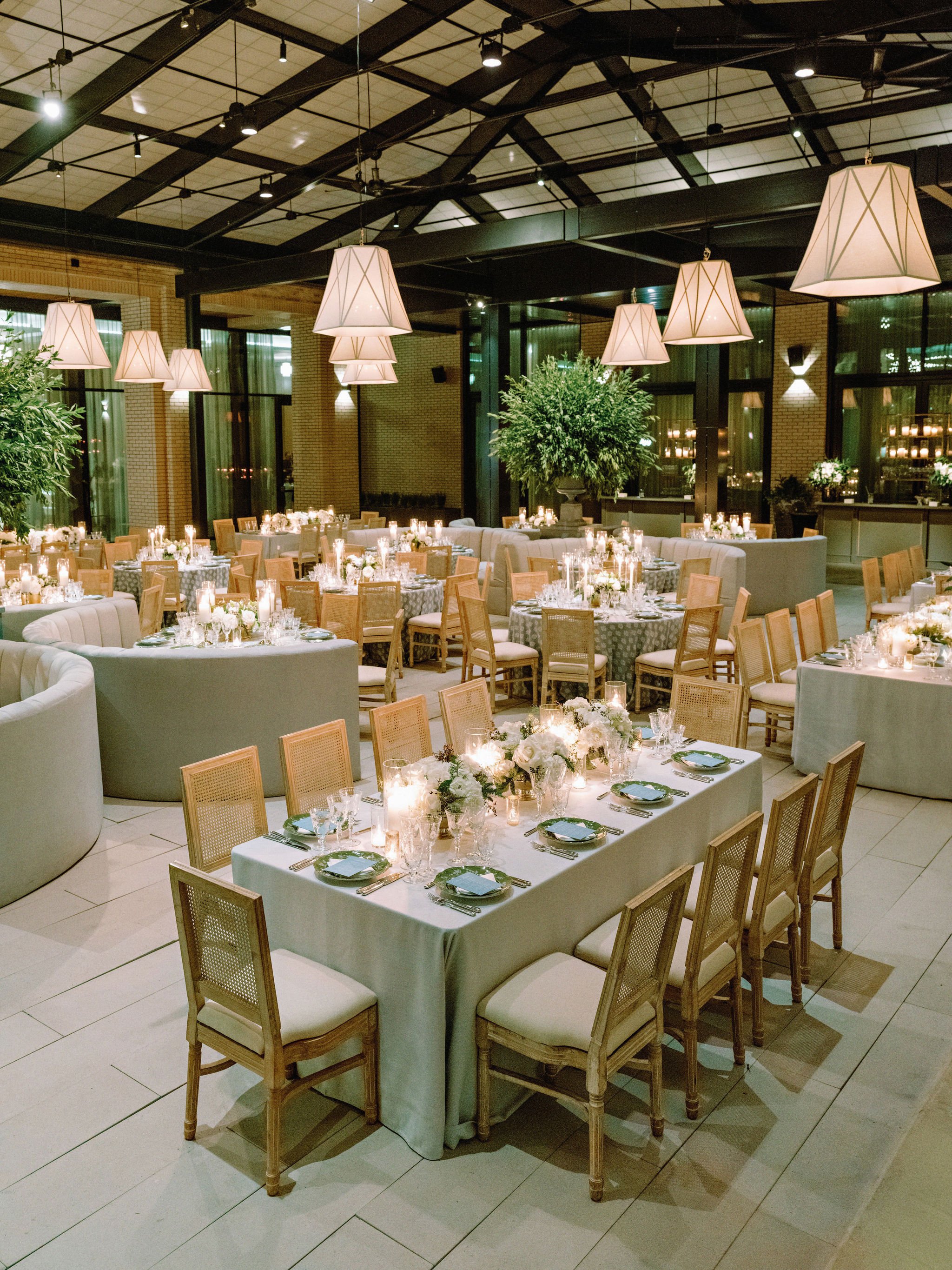 Together with Laurie Arons, we designed a holiday wedding at a private Fort Worth residence, where a tented setting was transformed through wintry whites and a warm tonal palette. The true showstopper of the evening was the ceiling, completely covered by Technical Event Company in radiant starburst fixtures for a truly magical touch.